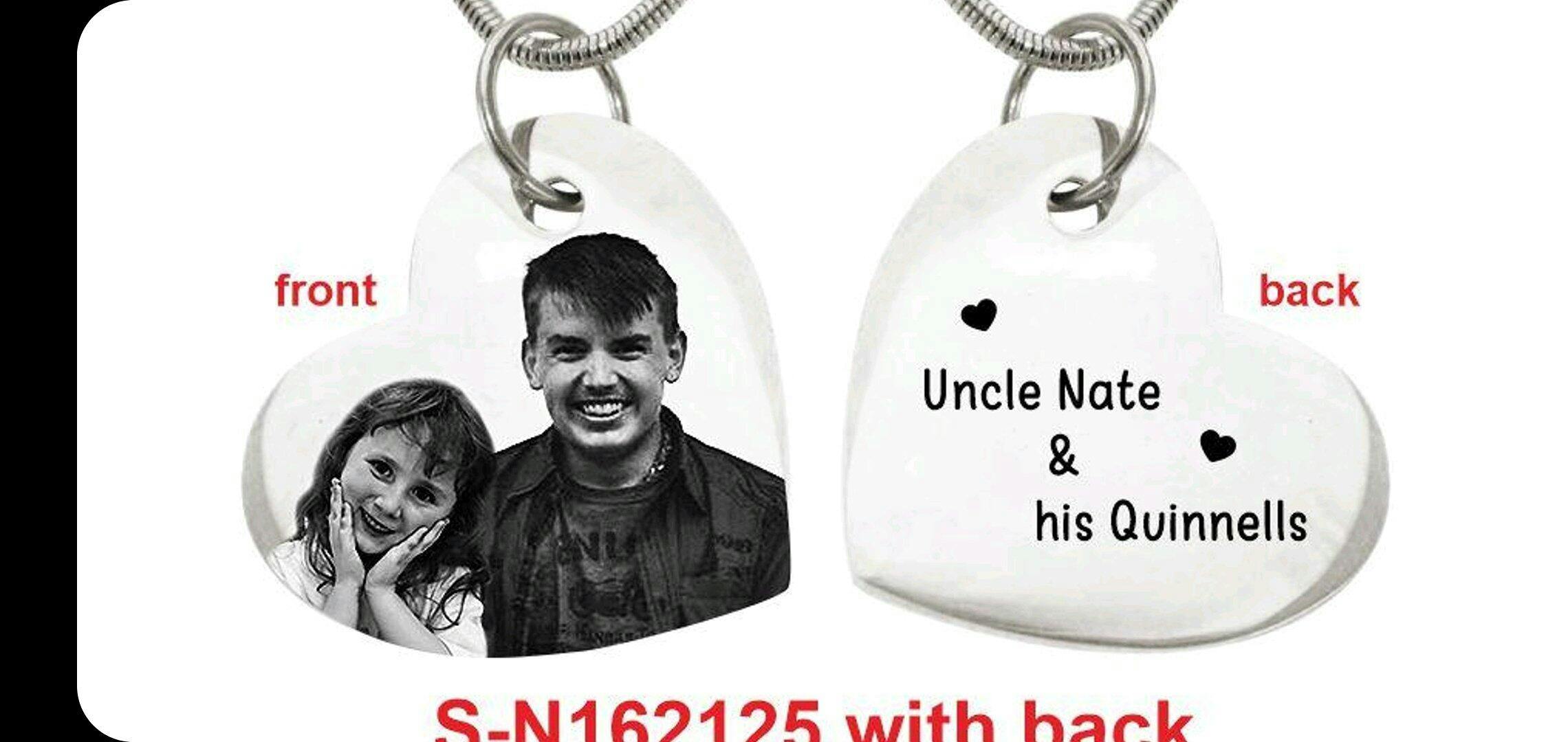 Belle Fever has outdone themselves with the end result for my Bottom of My Heart necklace. My granddaughter, now 8yo, wanted her own pendant with a picture of her & her Uncle Nathan. Unfortunately her Uncle was killed when she was a toddler.