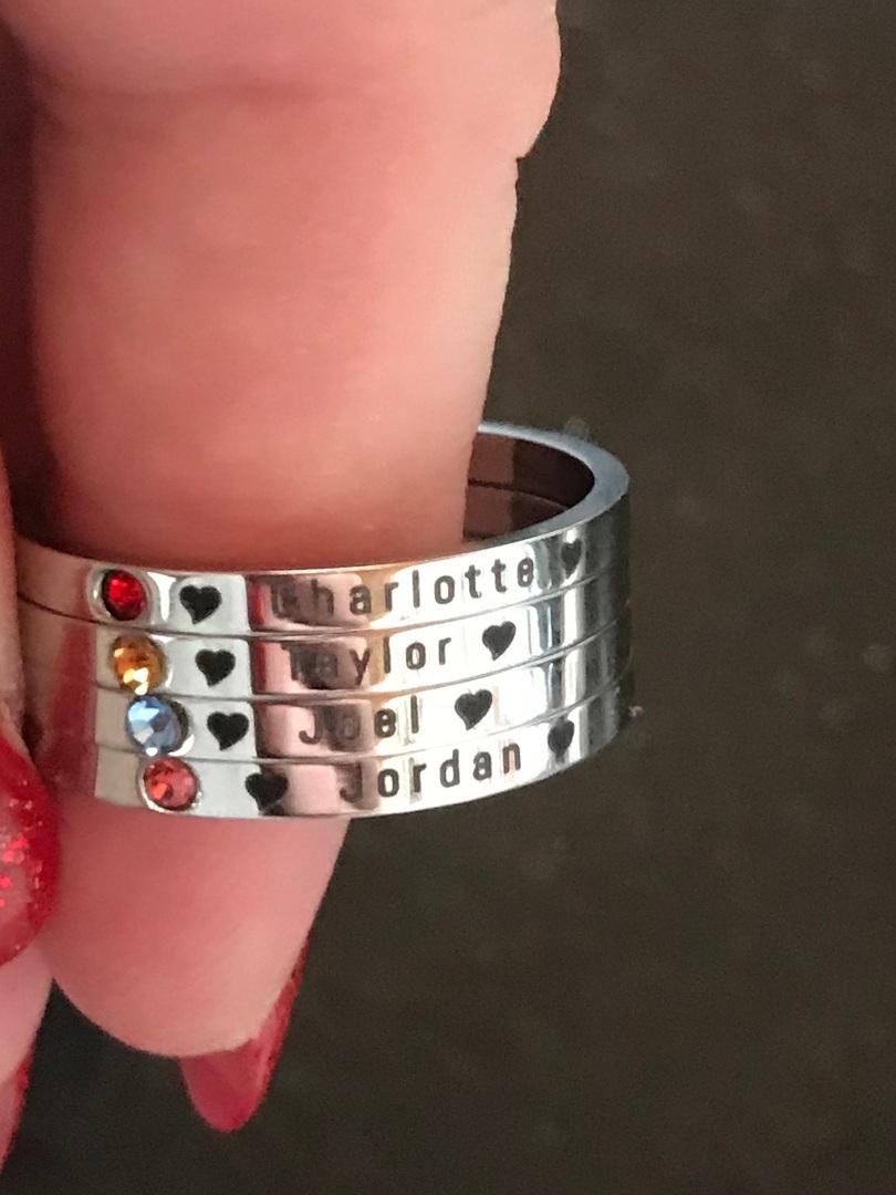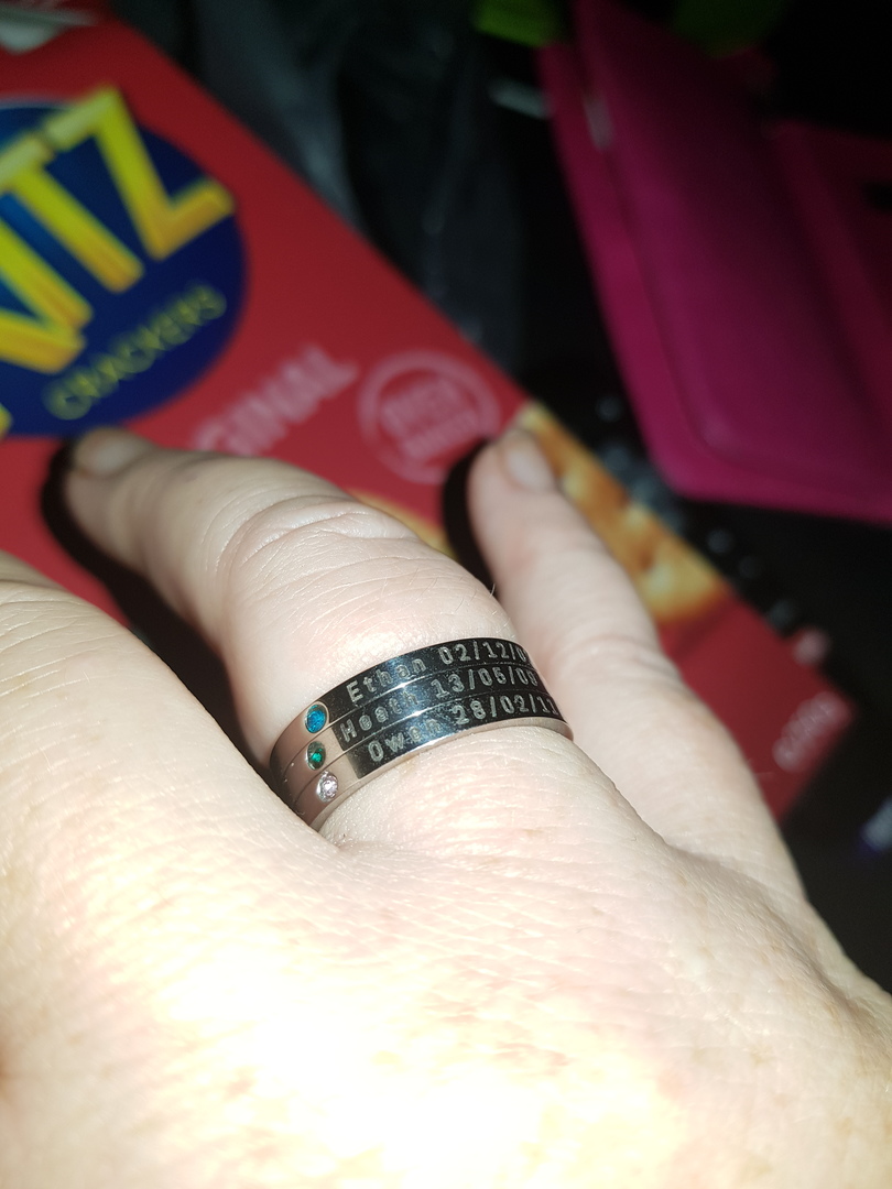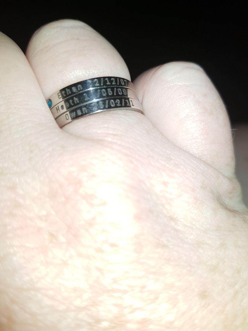 Absolutely love my new personalised ring I have my husband and my two boys names on it so I can take them with me wherever I go. I get so many compliments from it and people are always asking me where I got it from. Thanks Belle Fever you guys truly are amazing!