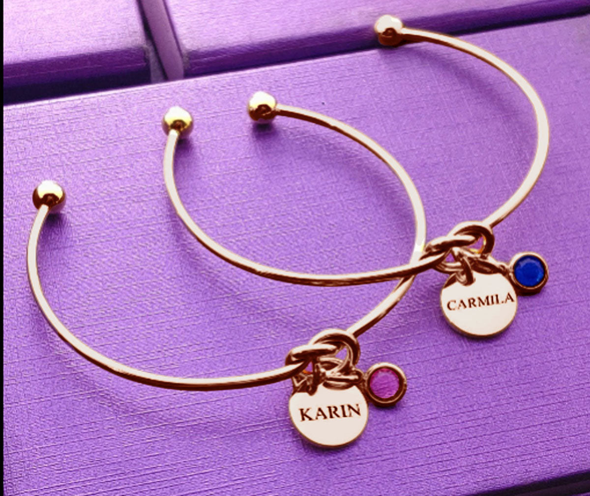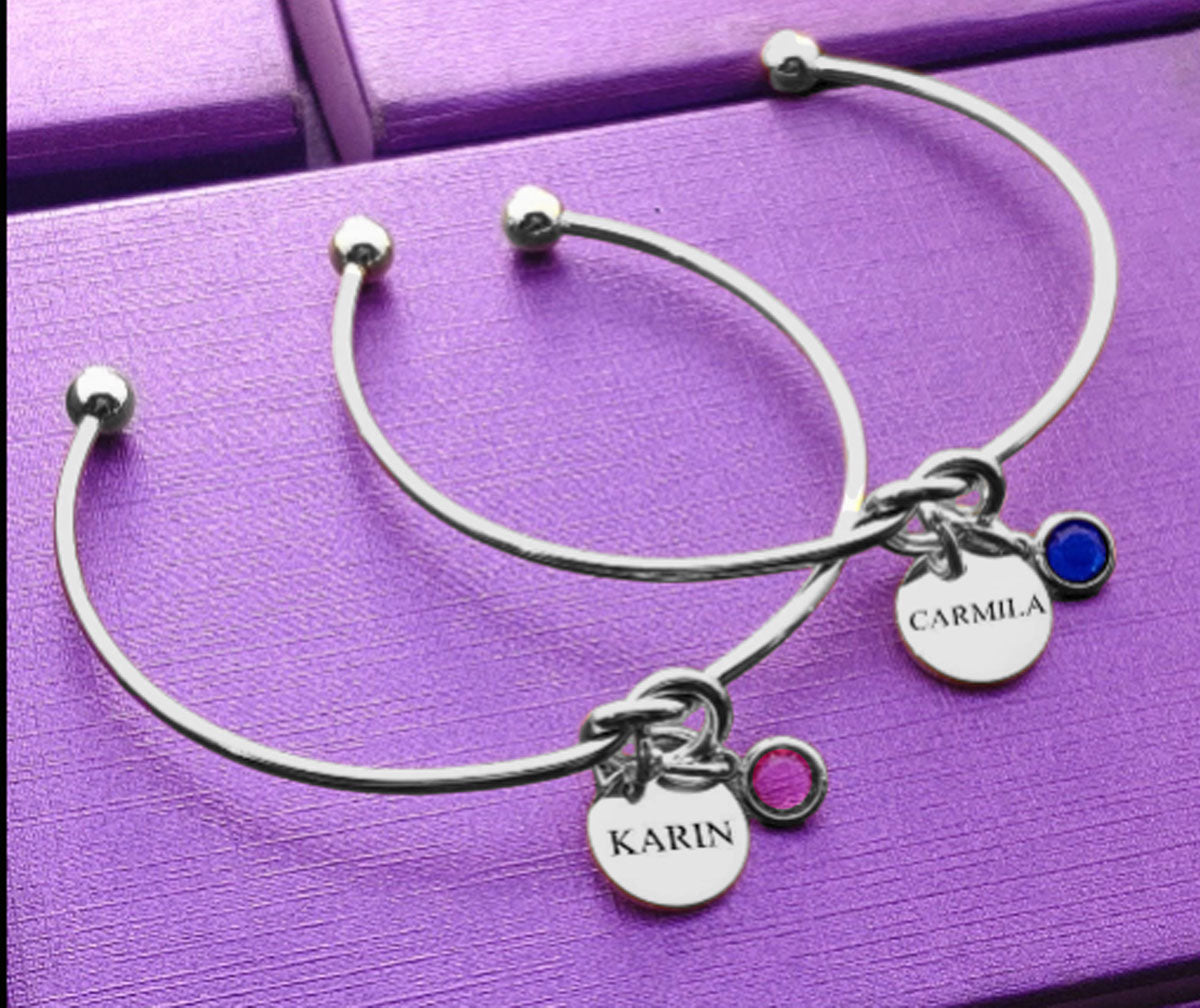 "Love my bangle so much! I have been looking for a bangle for a long time with my kids' names on it. It was just what I was looking for. Thank you so much. Super fast and great communication. 😊"