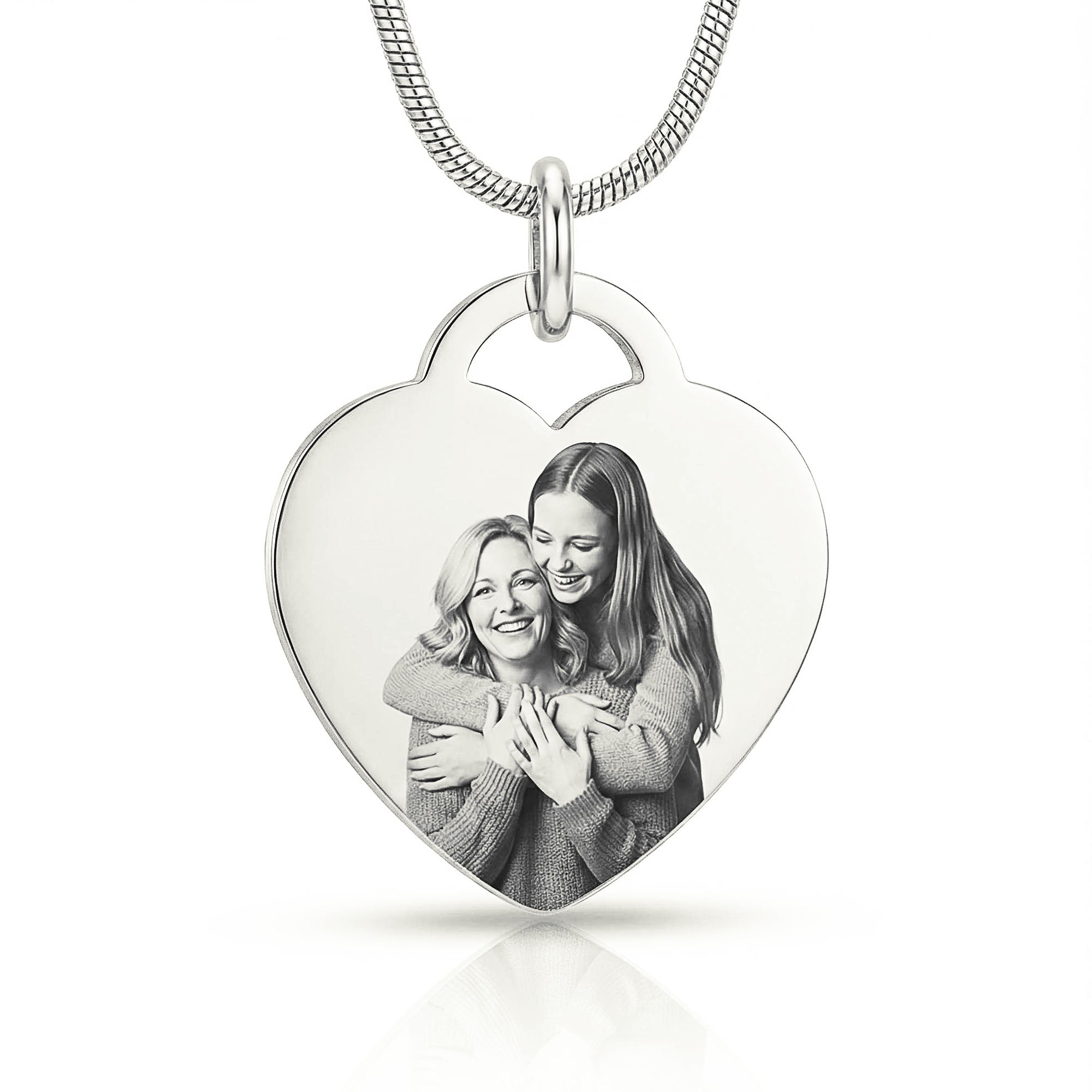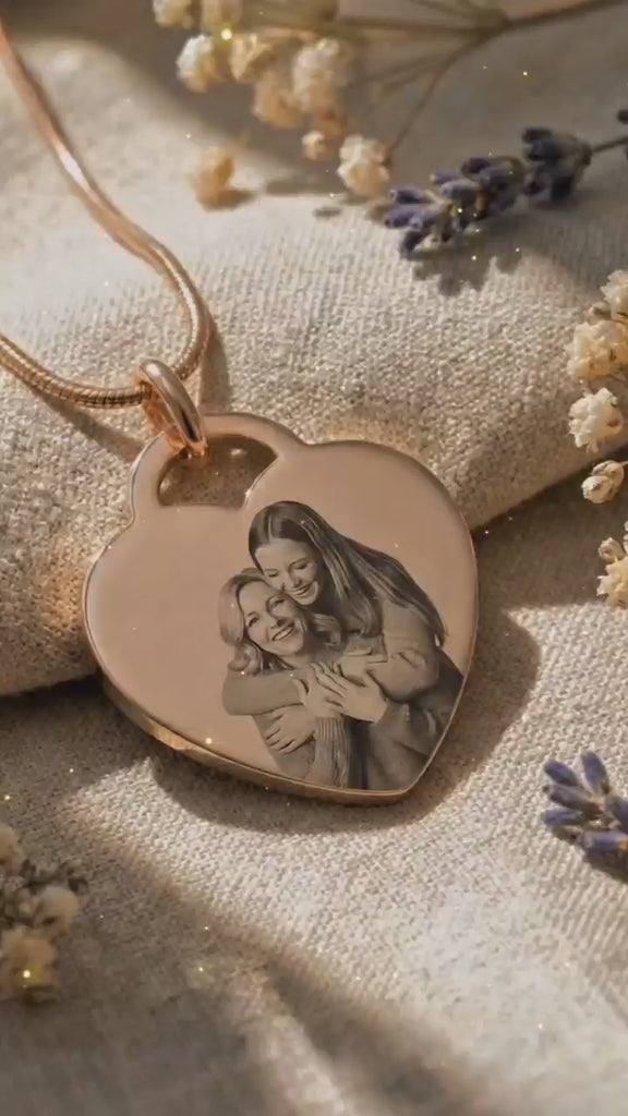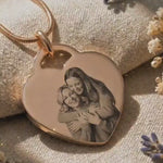 Belle Fever Forever in My Heart Photo Necklace — personalised engraved heart pendant worn close to the chest, celebrating love and meaningful bonds.