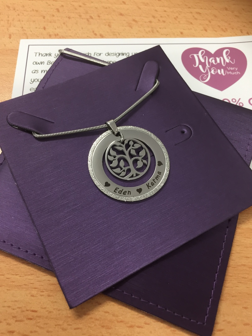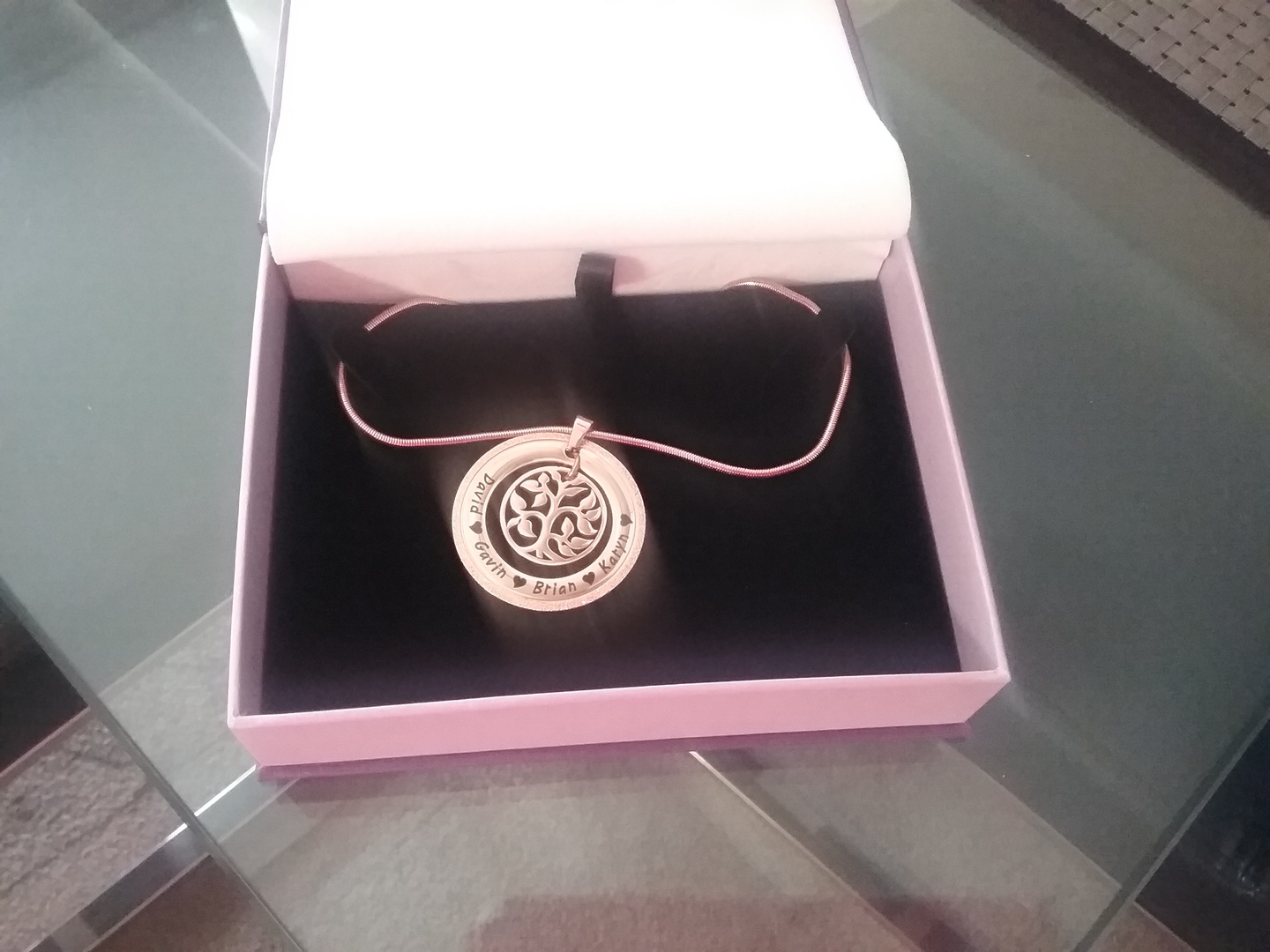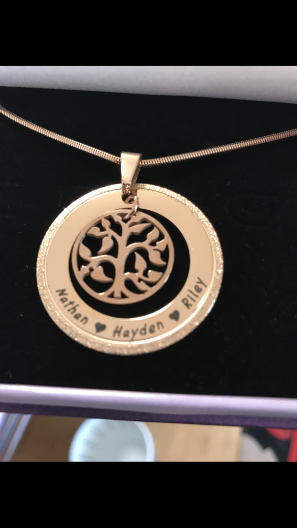 Received the necklace today and looks even better than I hoped it was for my sisters birthday as she just had her last kid and loves it my dad wants one and I am going to soon