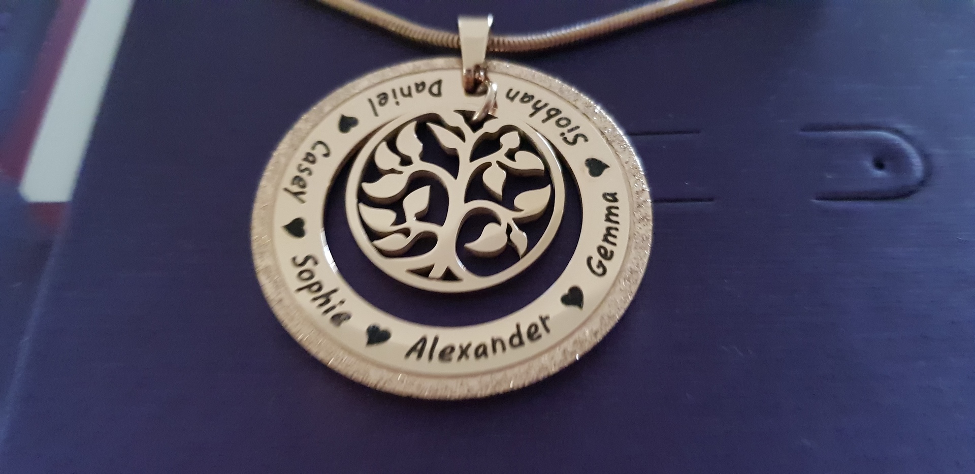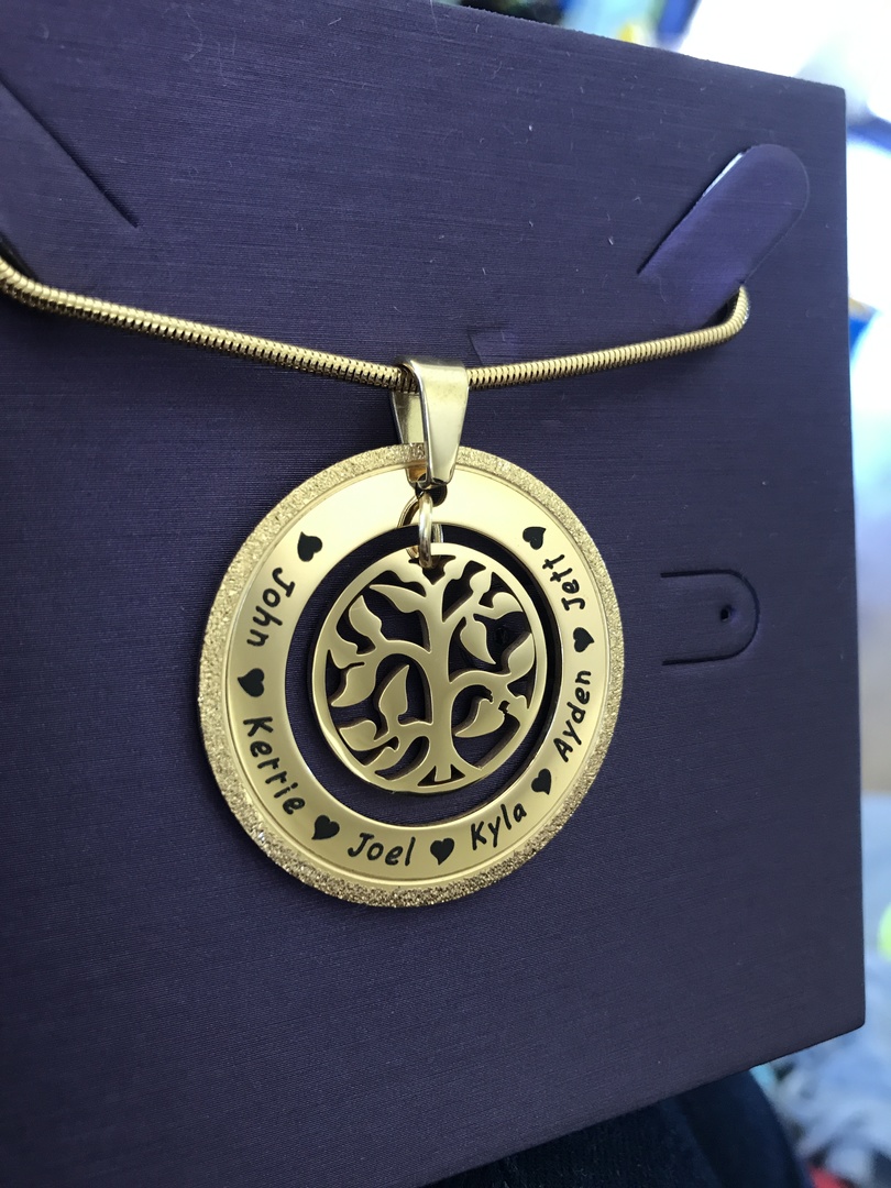 Elegant and endearing, the very popular My Family Tree necklace makes the perfect gift for mothers, grandmothers, aunts, best friends, or even as a treat to yourself. Personalise the ring with your names, dates, words of inspiration or messages and have it surround the family tree symbol that represents love, growth and beauty.