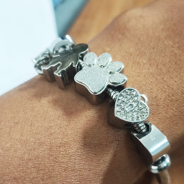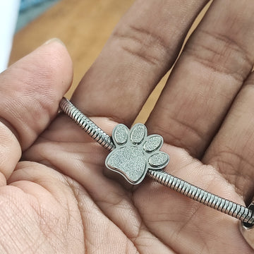 Your pets are the best. They make you smile when you're down. They adore you no matter how you look, your stage of life, or if you fail or succeed. I exist to celebrate the love you have for your furry friend. I'm known as the Sparkling Paw Charm for Moments Bracelet. My paw can sparkle radiantly in the light. I'll help you remember them forever. No matter where you travel in life, a small piece of them can be with you.