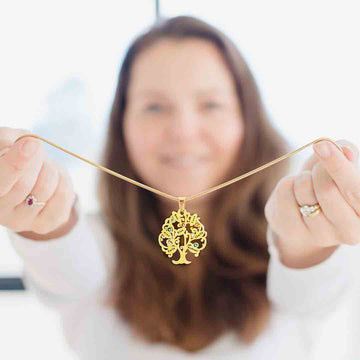 Our design layout service is available for customers who want to work with our designer to create a design with up to 3 revisions included. The Tree of My Life Birthstones personalised necklace with names is not only a beautiful piece of jewellery but also a meaningful one that will be cherished for years to come.